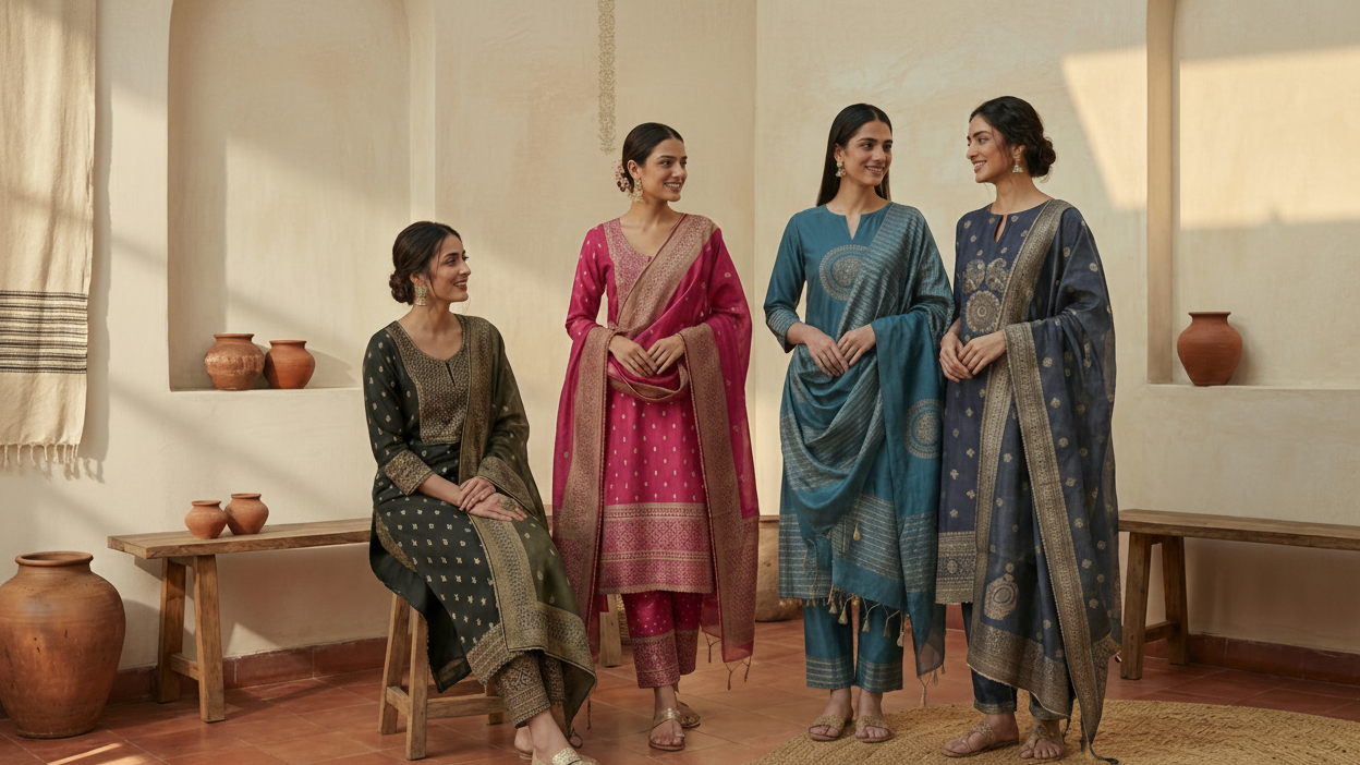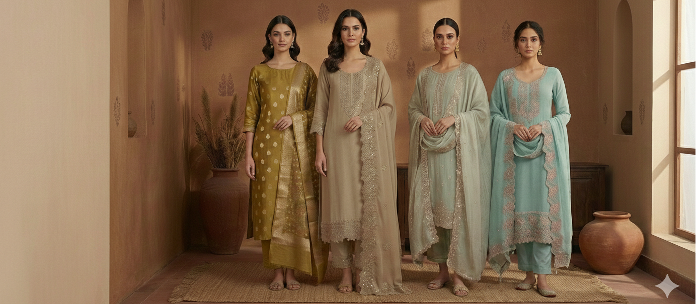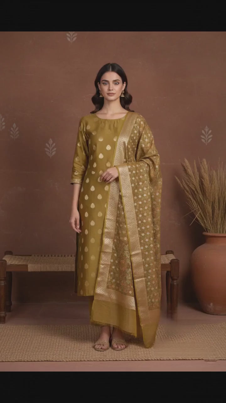 Black Banarasi Silk Weaving Suit Set with Handloom Dupatta – Unstitched 3-Piece